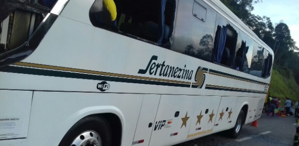 05.jan.2017 – Ônibus que atingiu caminhão na rodovia Régis Bittencourt
